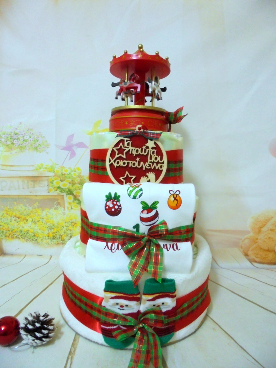 Χαρίστε του ένα δώρο που θα κρατήσει για πάντα στη μνήμη – μια γιορτινή μωρότουρτα που συνδυάζει τρυφερότητα, πρακτικότητα και χριστουγεννιάτικη λάμψη.